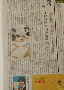 また、本日の朝日新聞スポーツ欄(23面)では全国扱いで取り上げられました。