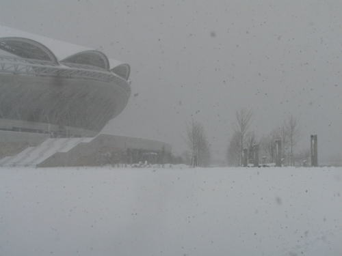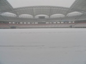 スタジアムの椅子に暖房が入ったとしても、風は?雪は?寒風吹きすさぶスタジアムで試合の間、雪の中じっと椅子に座ってろと・・・・・。