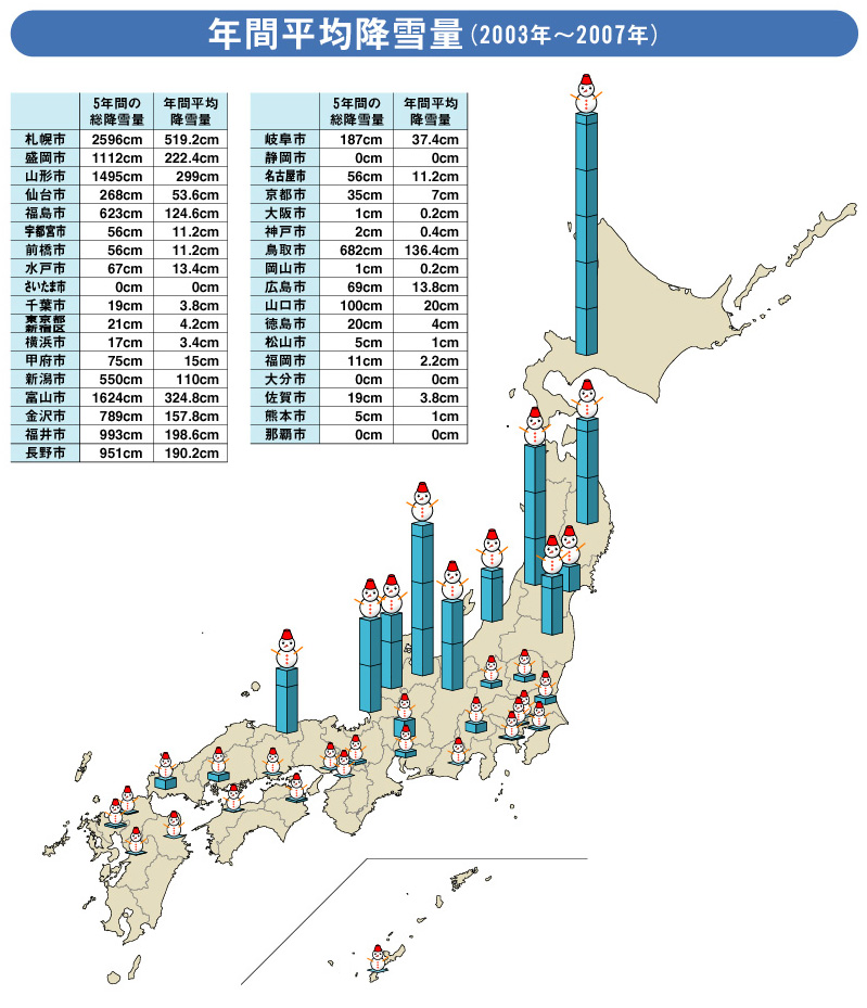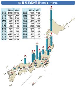 ここに今回、サポーター有志でまとめた日本の降雪状況のグラフがあります。